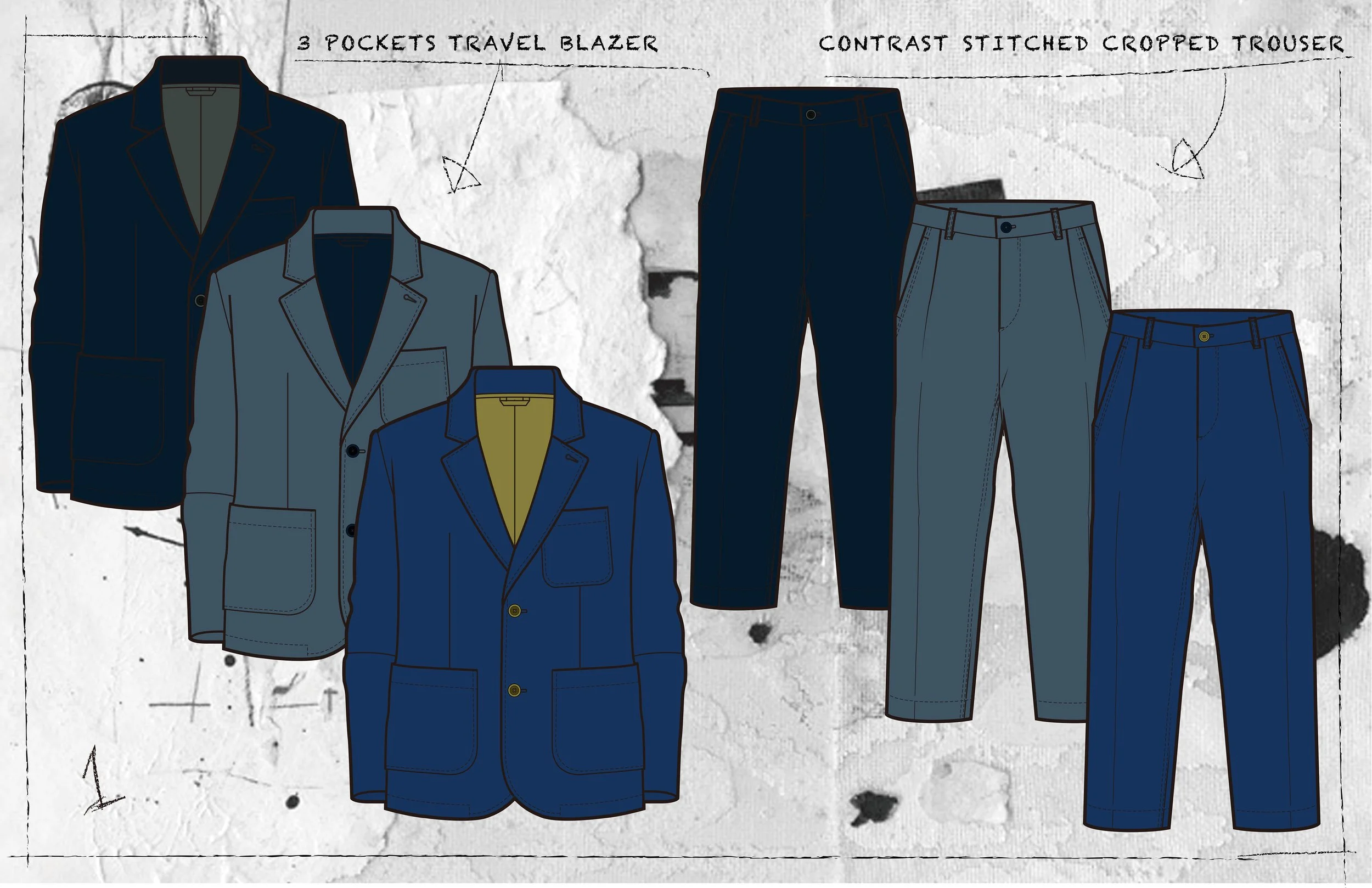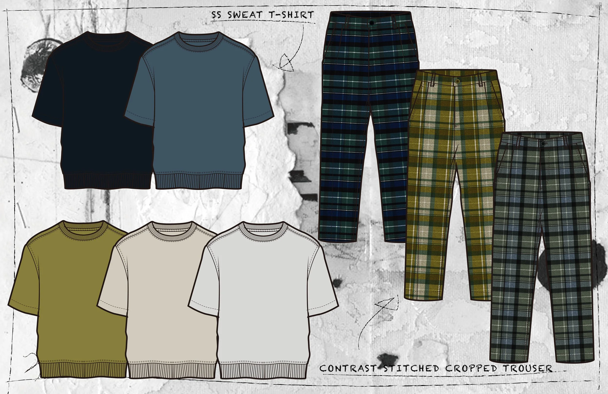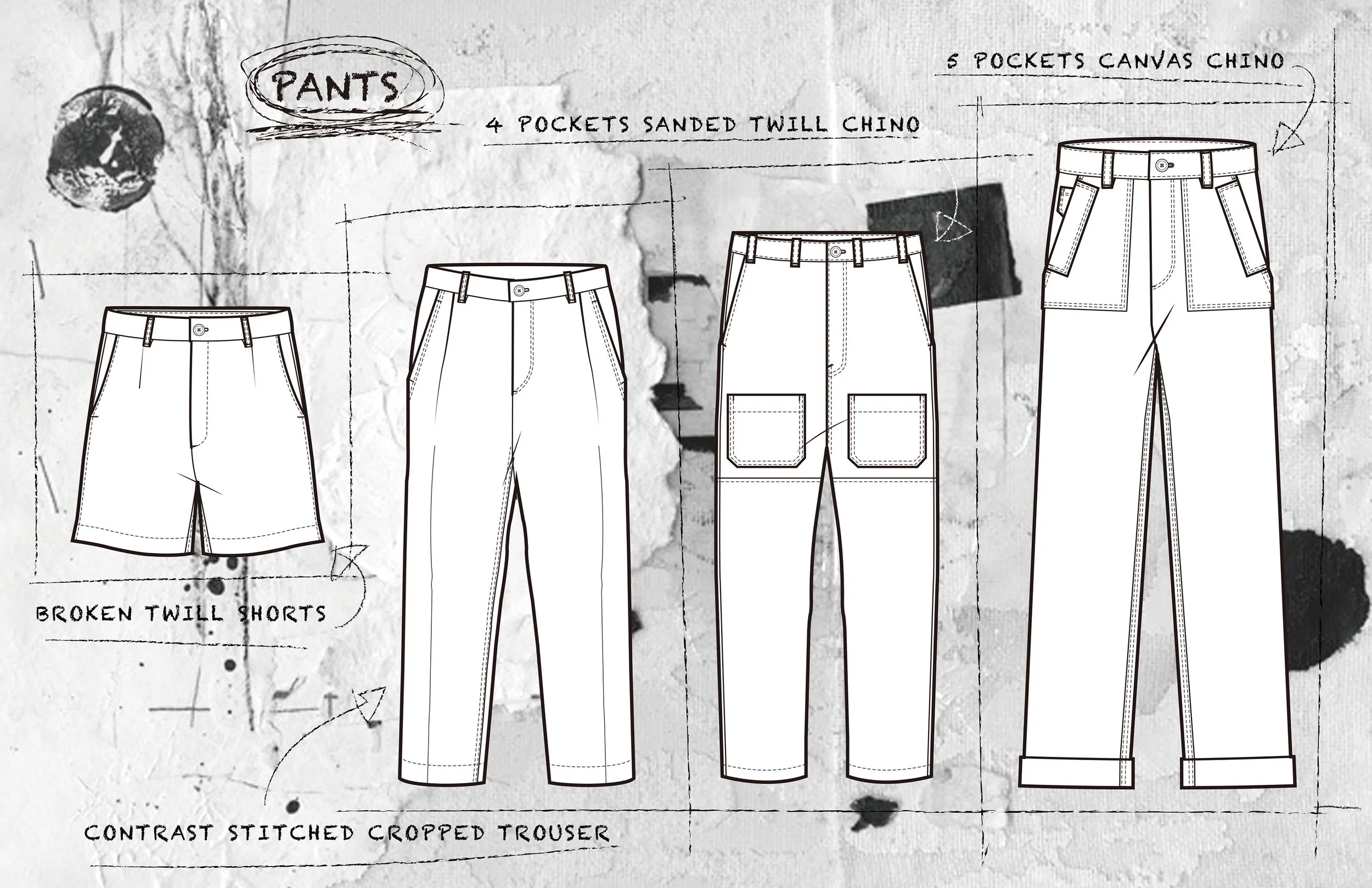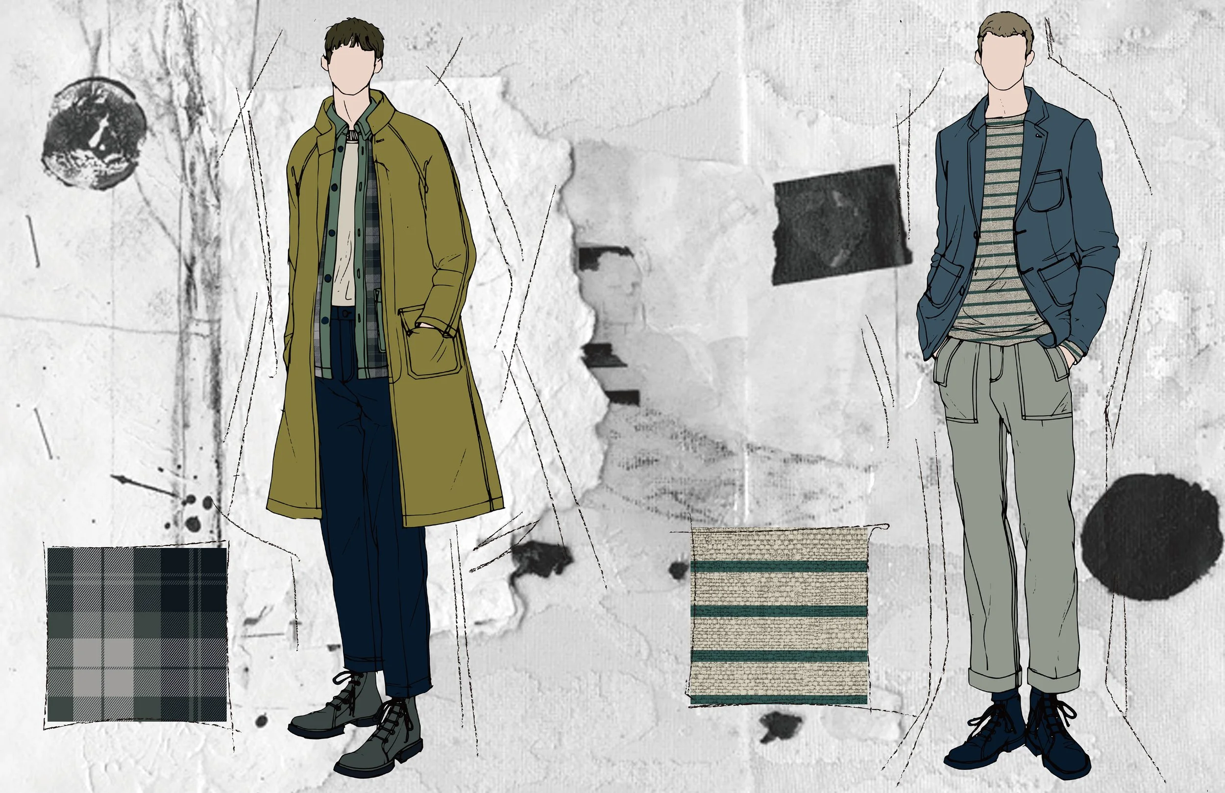 Basic items with minimal details such as t-shirt, shirt, shorts and chinos, and printed fabric such as leaf motifs, bold stripes and plaid make up the collection. Also, to emphasize the naturalness or distressing, garment-washing was done to the garments.
